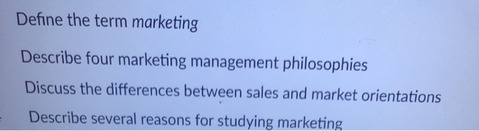 Solved Define The Term Marketing Describe Four Marketing Chegg Com